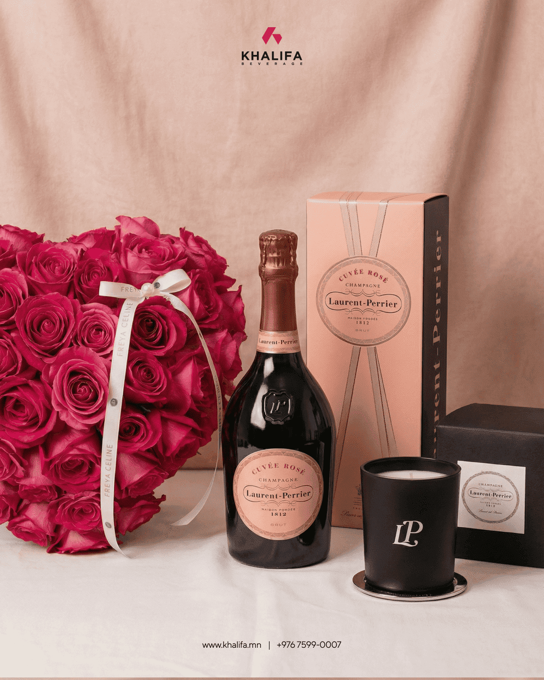 Laurent-Perrier оргилуун дарсыг Freya цэцгийн дэлгүүрийн 50 улаан сарнайн баглаатай хослуулсан тансаг бэлгийн багц.
